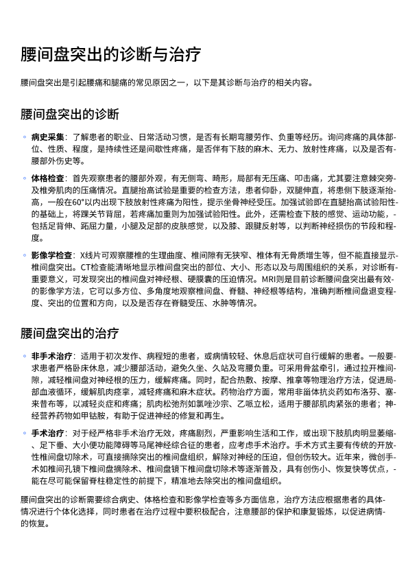 腰椎间盘突出的日常诊断与治疗
