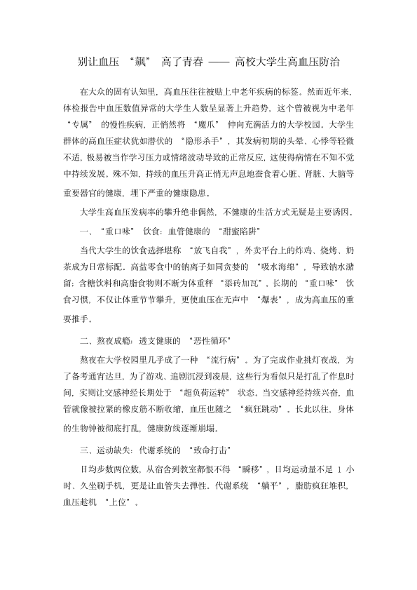 高血压大学生科普