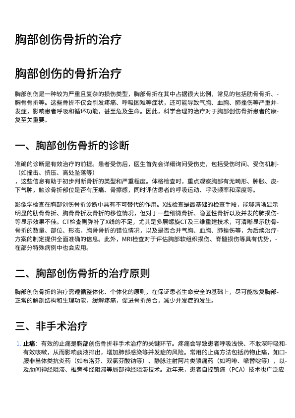 胸部创伤肋骨骨折的治疗