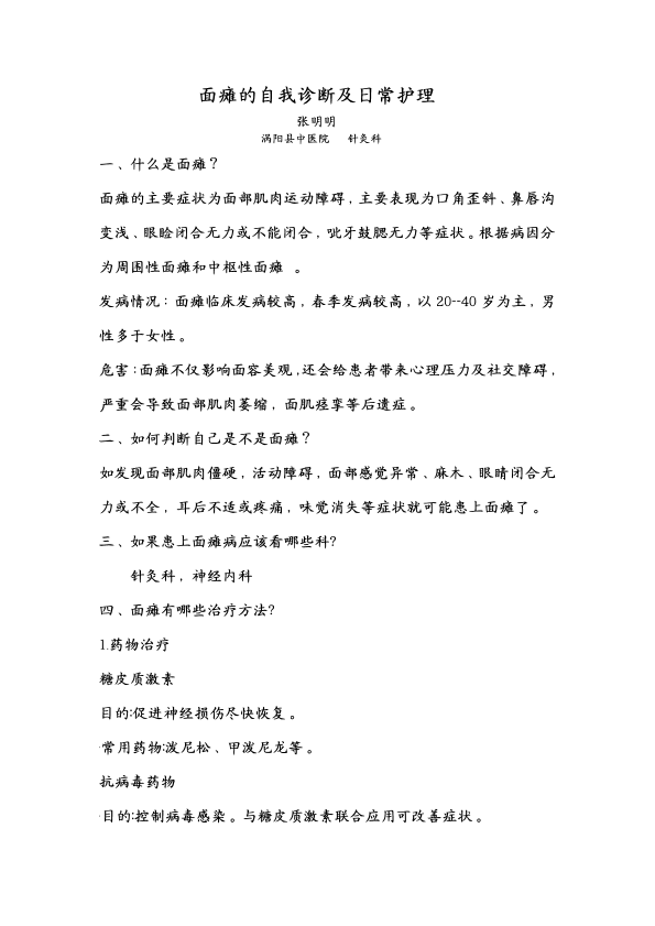 面瘫的自我诊断及护理