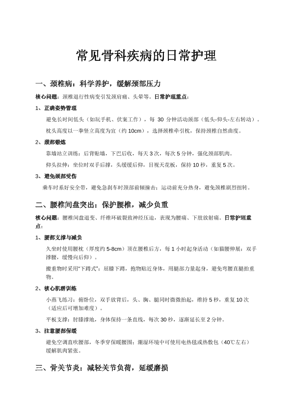 常见骨科疾病的日常护理
