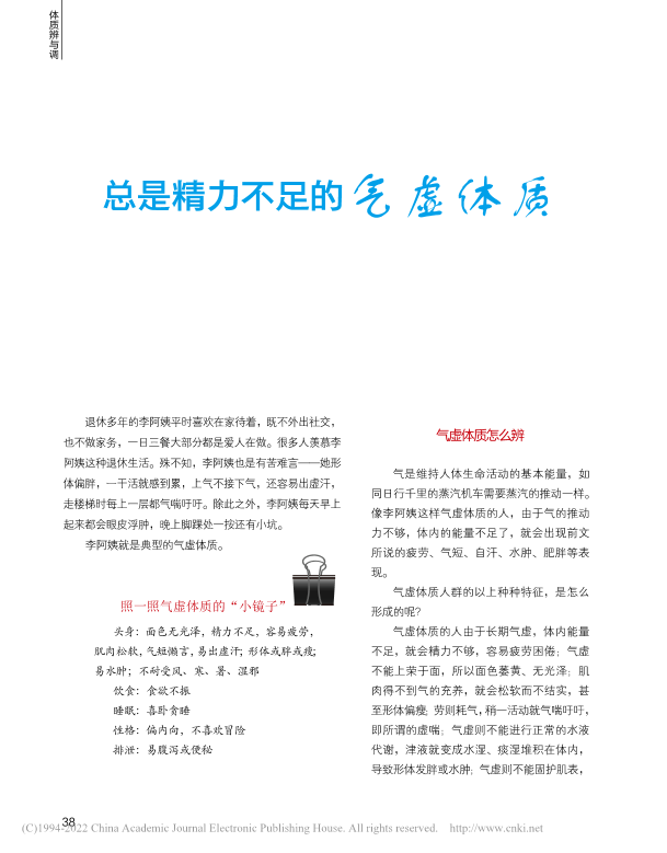 总是精力不足的 气虚体质
