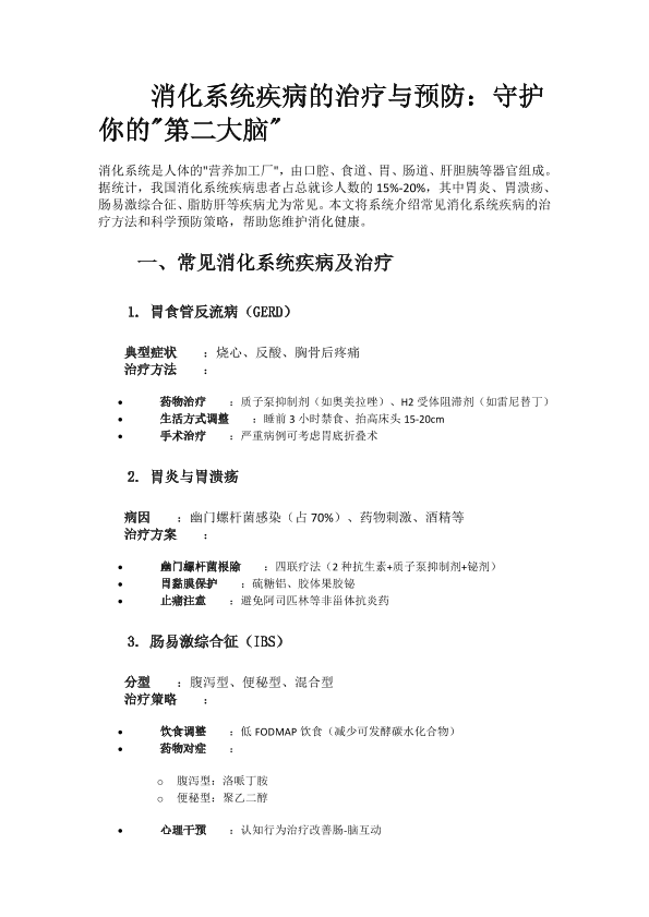 消化系统疾病的治疗与预防:守护您的“第二大脑”