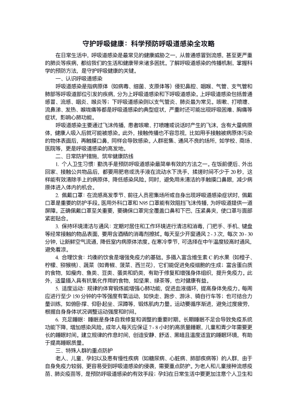 守护呼吸健康科学预防呼吸道感染全攻略