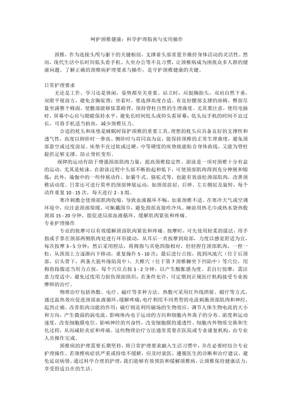 呵护颈椎健康:科学护理指南与实用操作