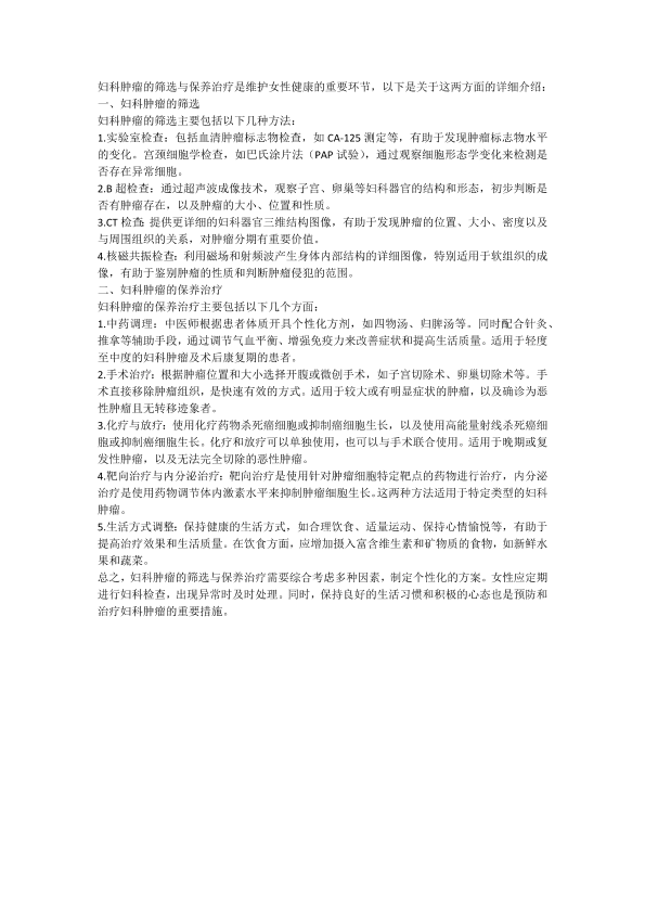 妇科肿瘤筛选与保养治疗