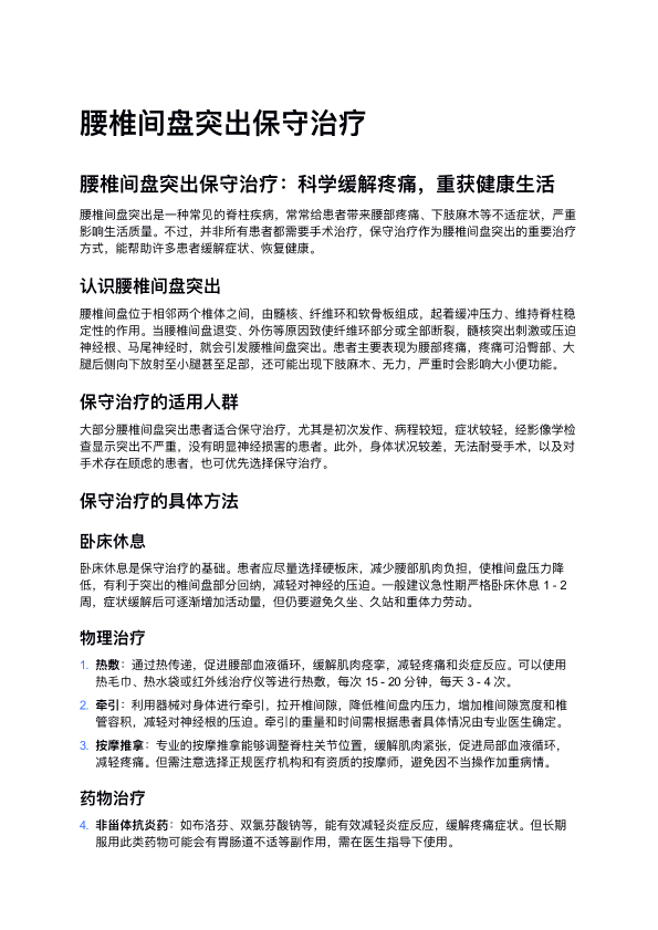 腰椎间盘突出保守治疗