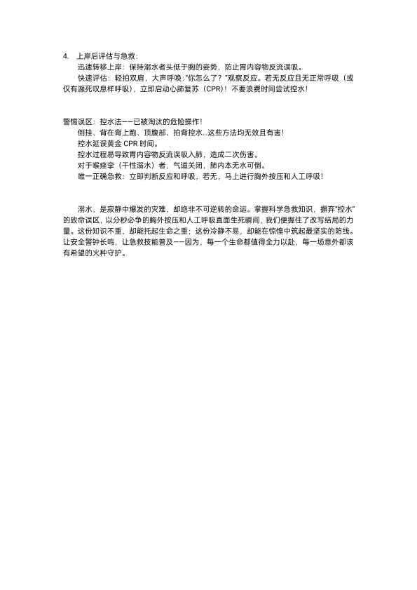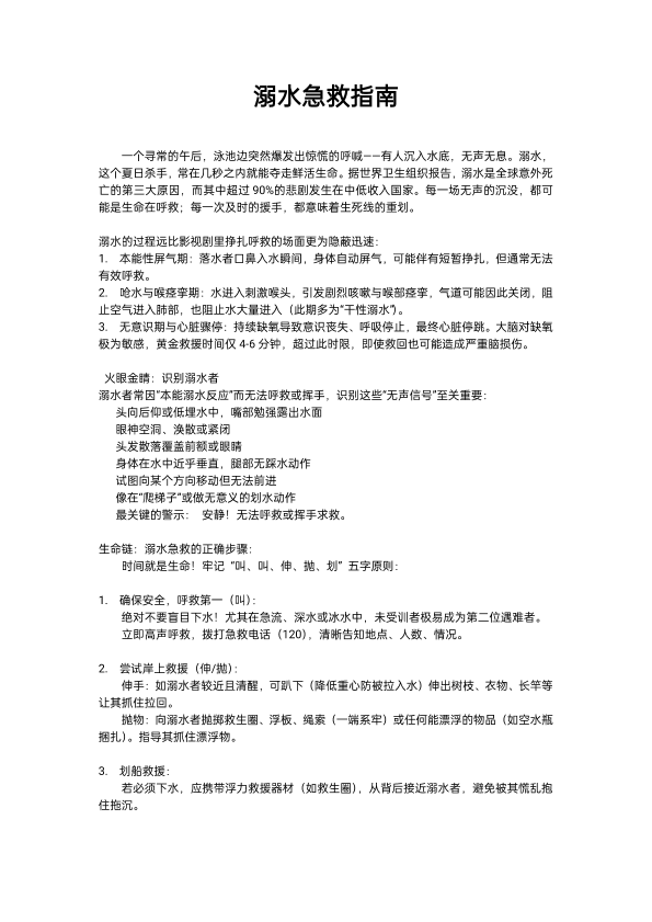 文字类 溺水急救指南 王浩
