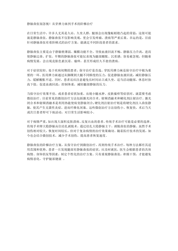 静脉曲张别忽视!从穿弹力袜到手术的阶梯治疗