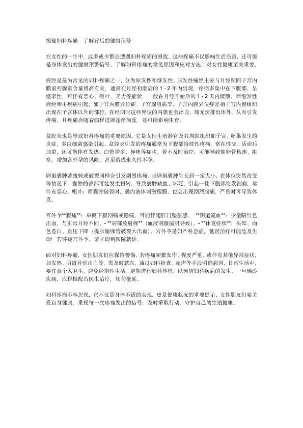 解密妇科疼痛,了解背后的健康信号