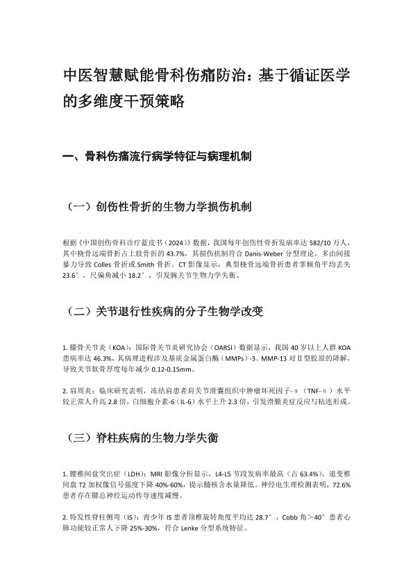 中医智慧赋能骨科伤痛防治:基于循证医学的多维度干预策略