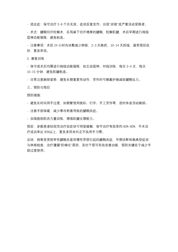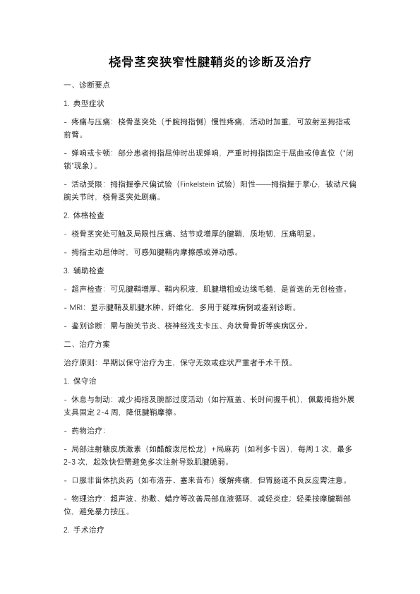 桡骨茎突狭窄性腱鞘炎的诊断及治疗