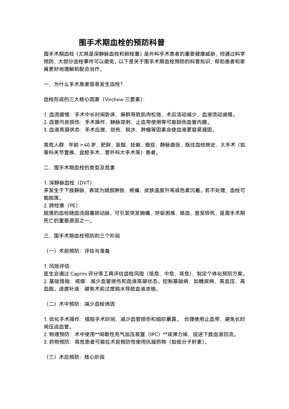 围手术期的血栓预防科普