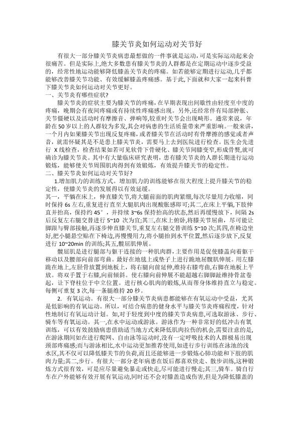 膝关节炎如何运动对关节好
