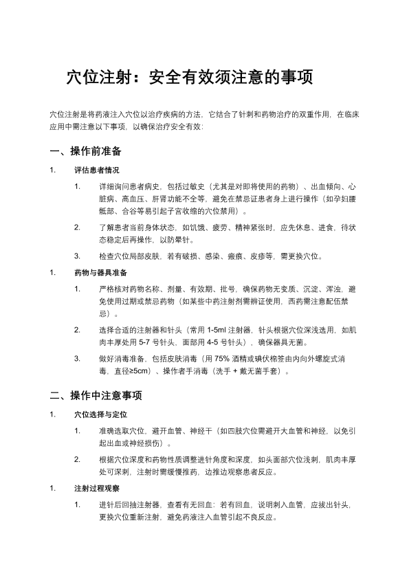 穴位注射:安全有效须注意事项