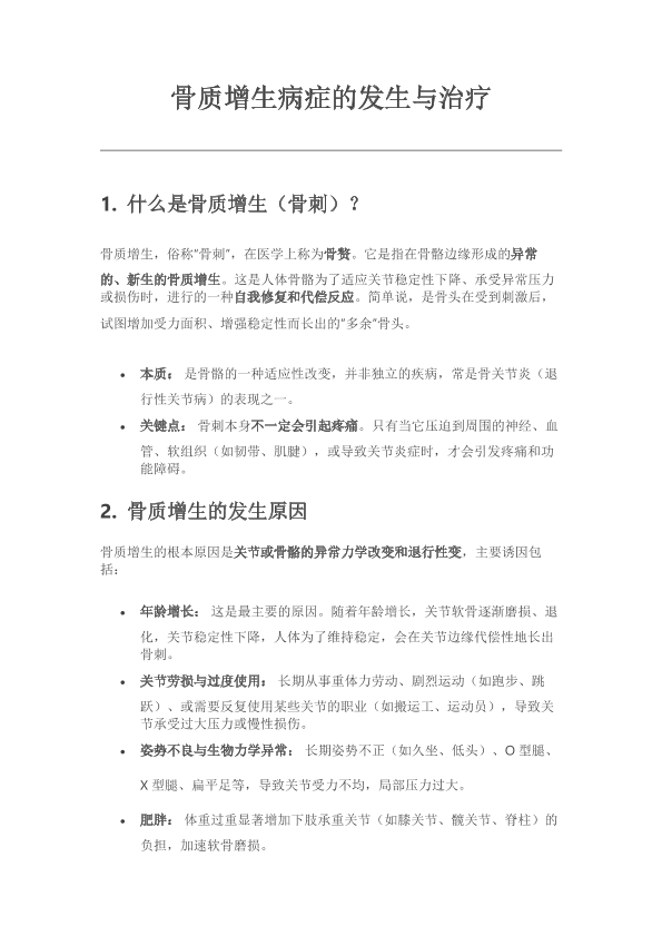 骨质增生病症的发生与治疗