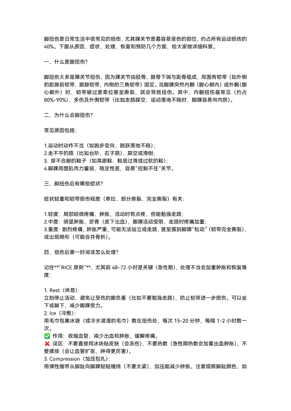 脚扭伤的日常科普