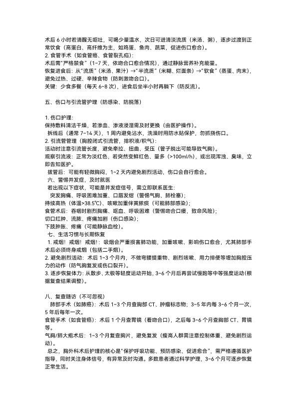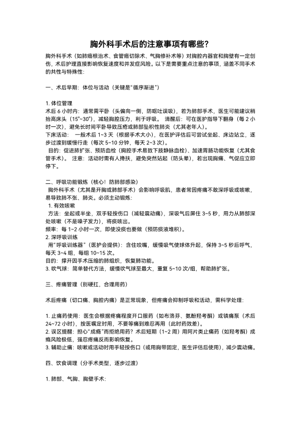 胸外科手术后注意事项有哪些?