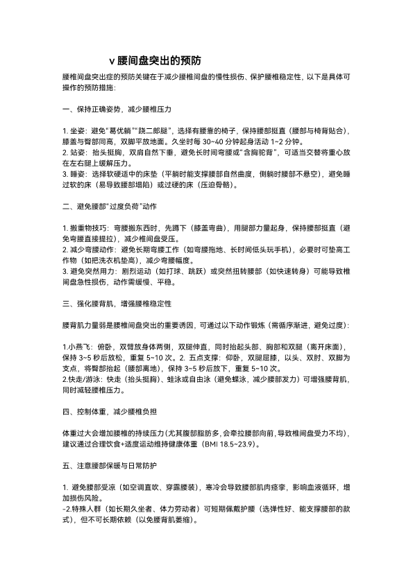 腰椎间盘突出的预防
