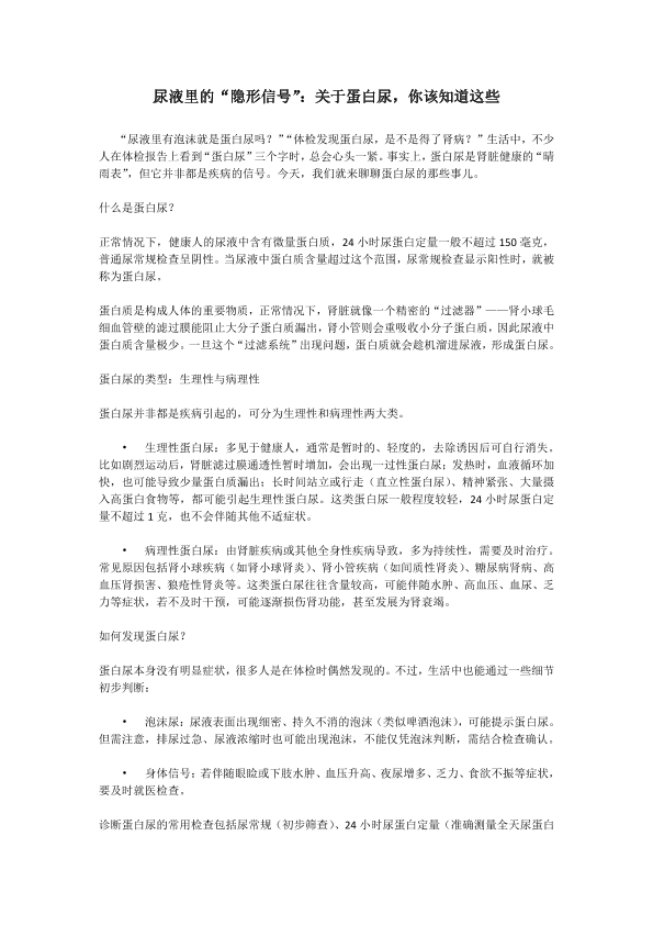 尿液里的“隐形信号”:关于蛋白尿,你该知道这些