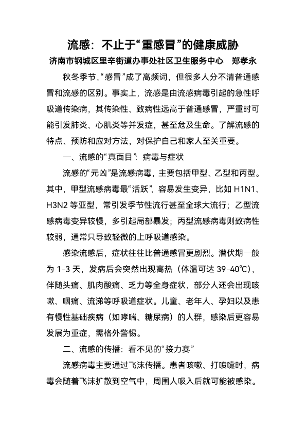 流感:不止于“重感冒”的健康威胁