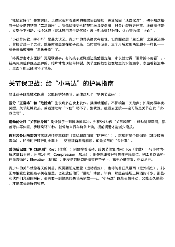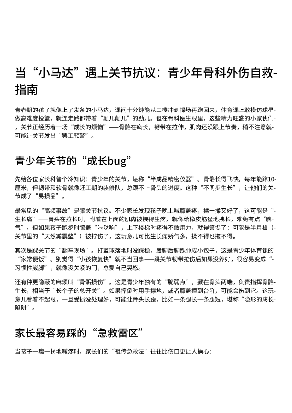 当“小马达”遇上关节抗议:青少年骨科外伤自救指南