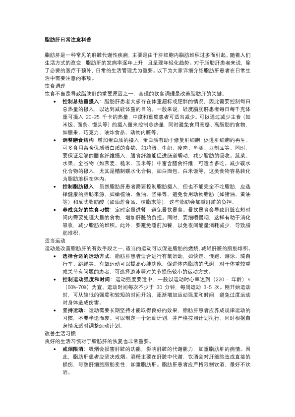 脂肪肝日常注意科普