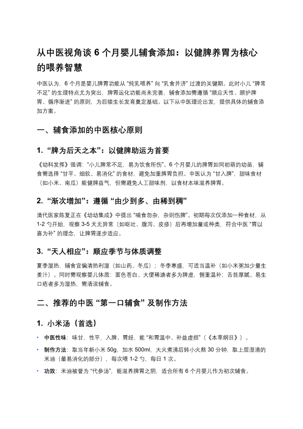 从中医视角谈 6 个月婴儿辅食添加:以健脾养胃为核心的喂养智慧