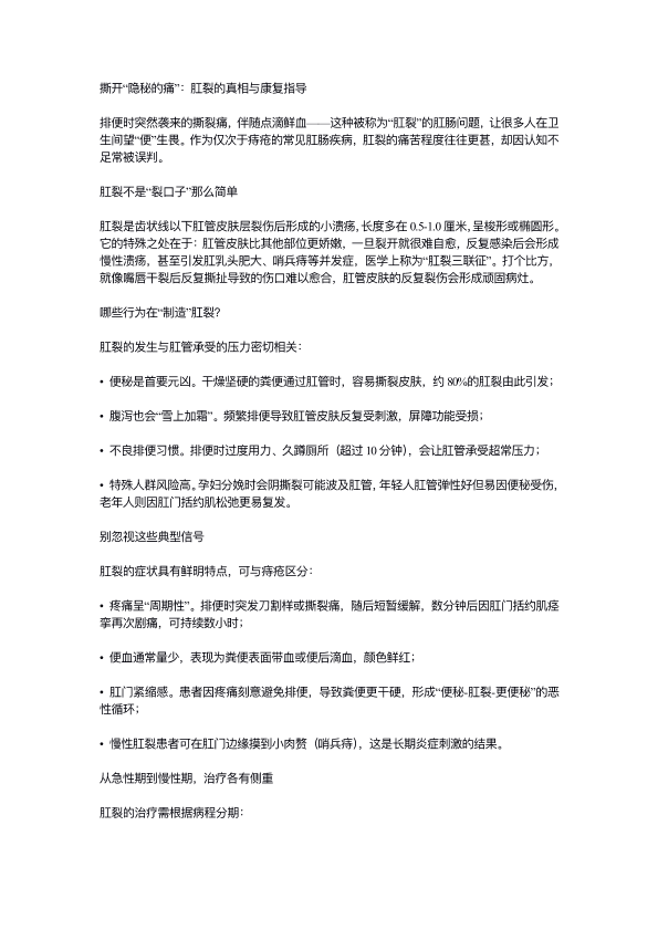 撕开隐秘的痛:肛裂的真想与康复指导