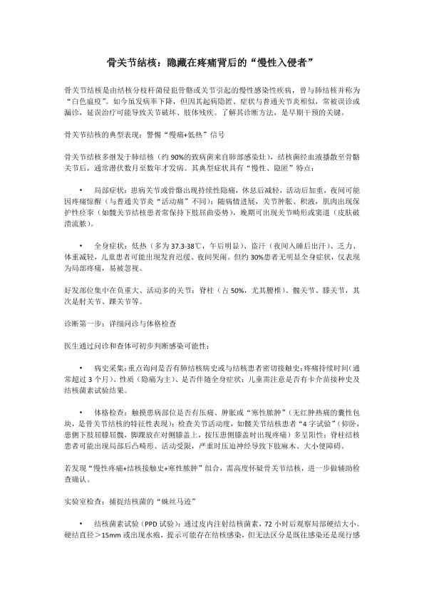 骨关节结核;隐藏在疼痛背后的“慢性入侵者”