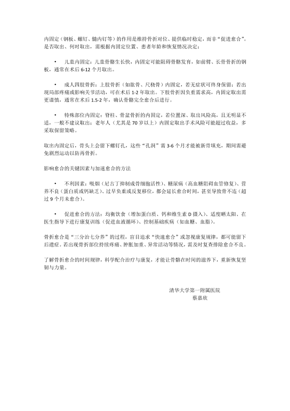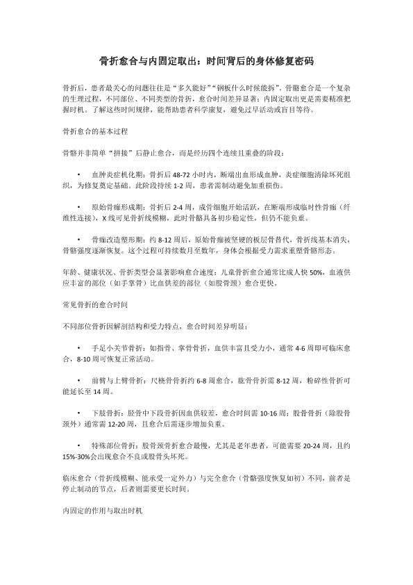 骨折愈合与内固定取出:时间背后的身体修复密码