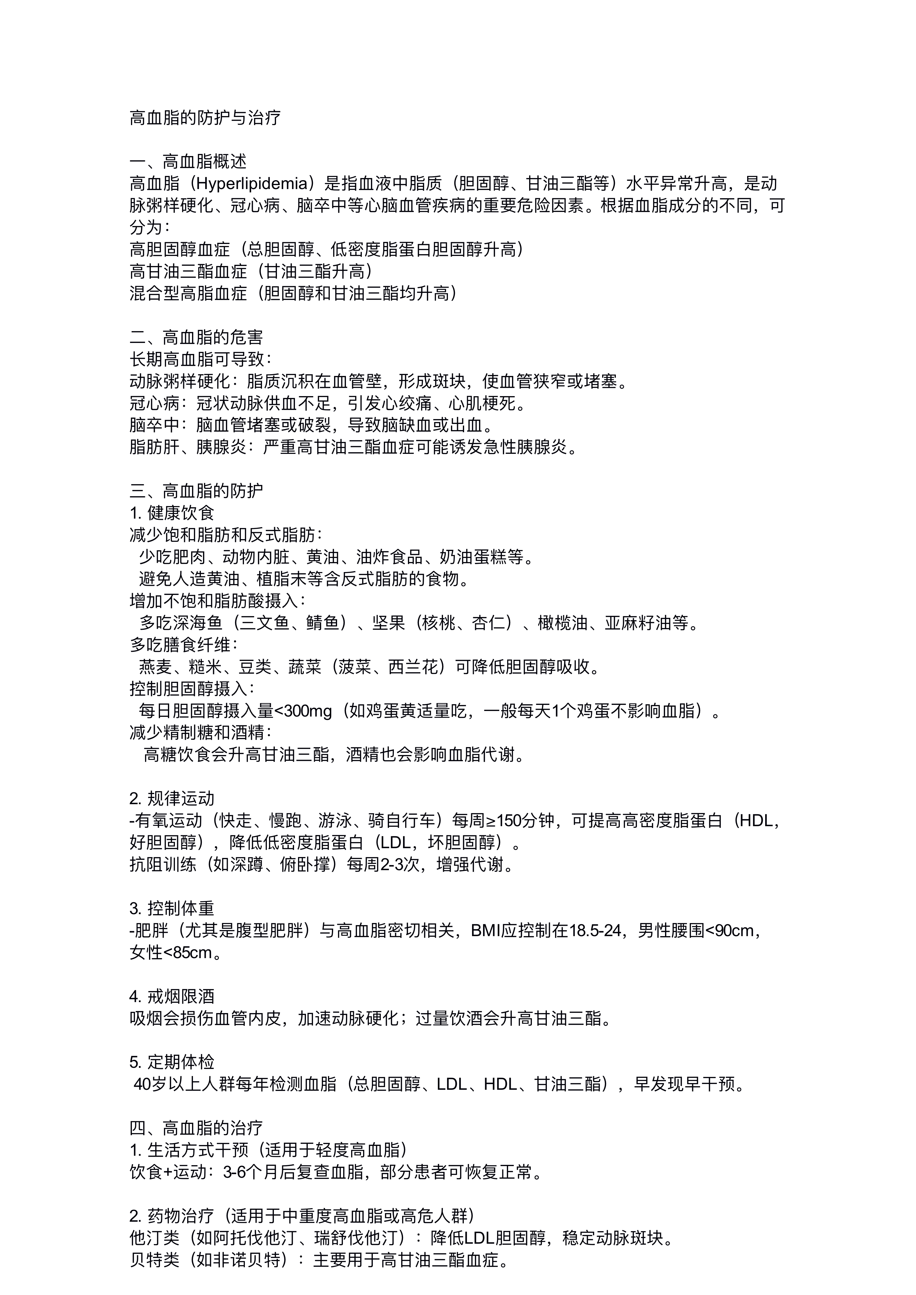 高血酯防护与治疗