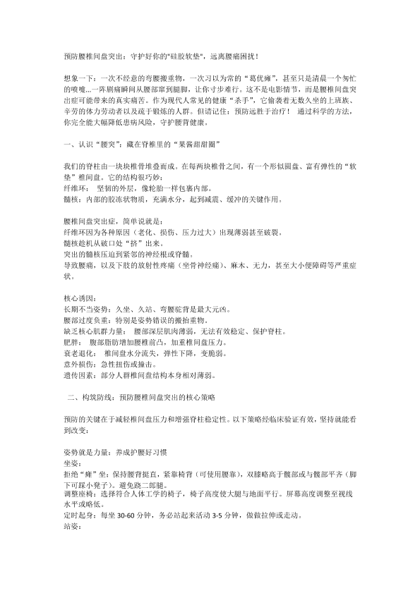预防腰间盘突出