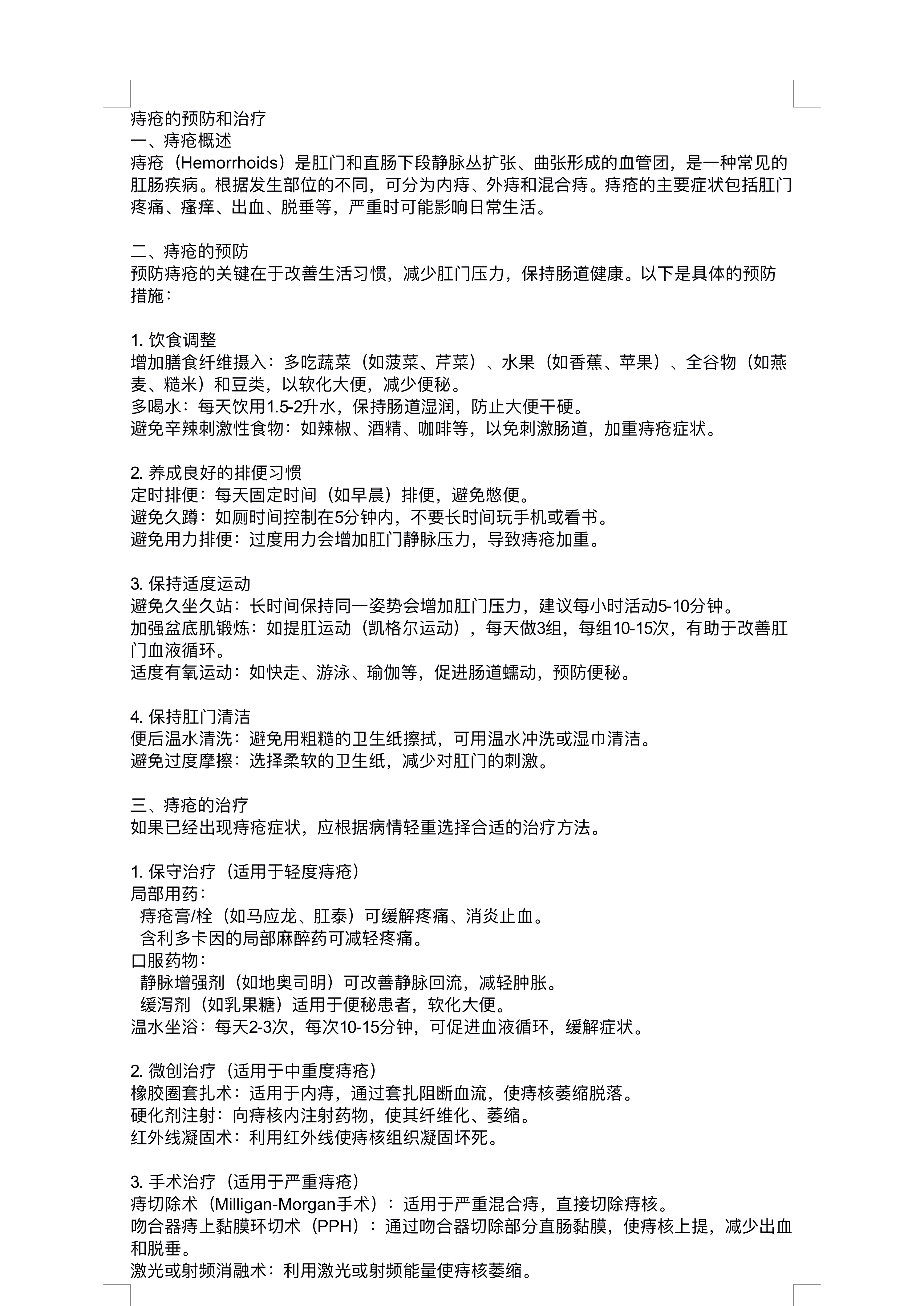 痔疮的预防与治疗