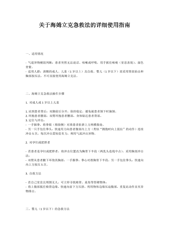 关于海姆立克急救法的使用指南