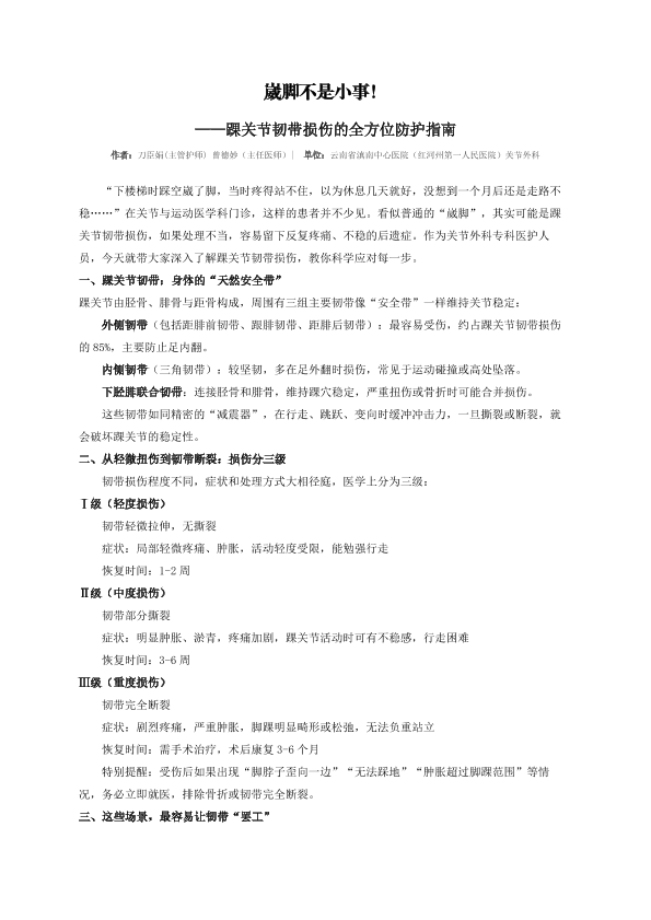 崴脚不是小事! ——踝关节韧带损伤的全方位防护指南