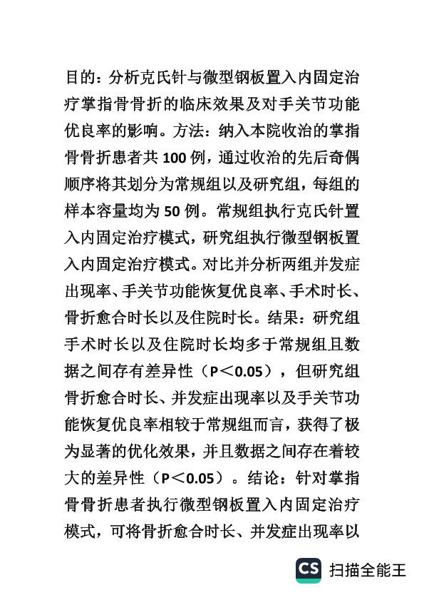 克氏针与微型钢板置入掌指骨骨折的临床研究