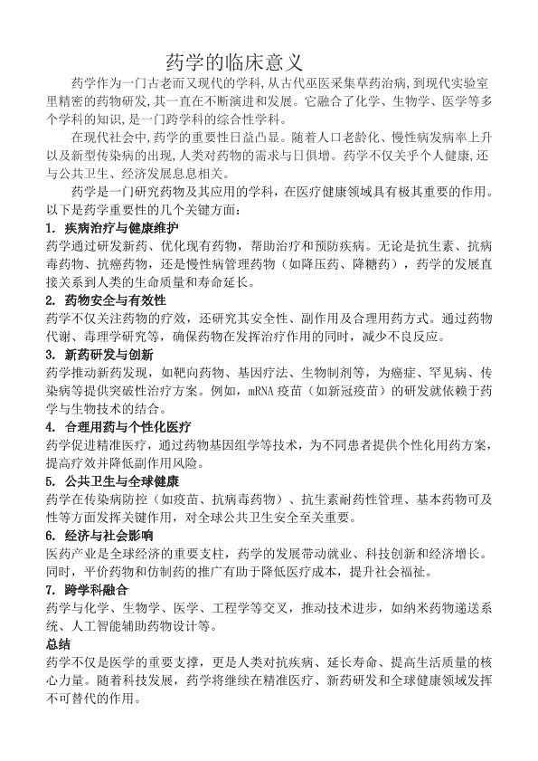 药学的临床意义