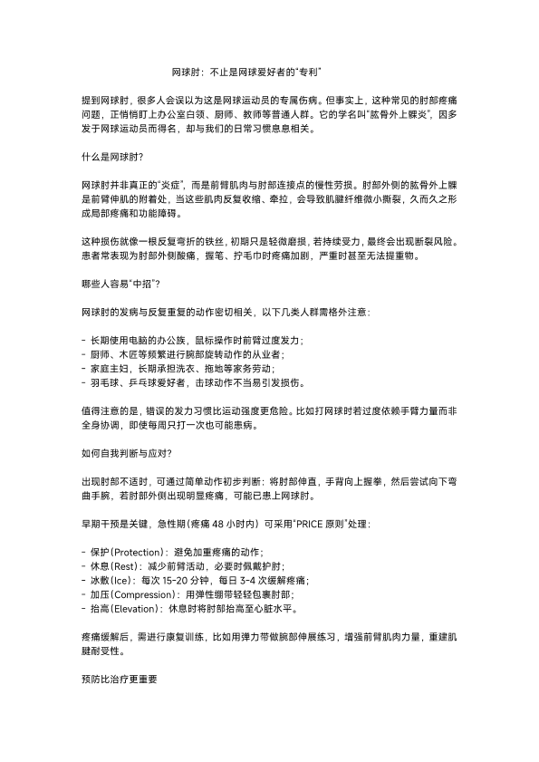 网球肘:不止是网球爱好者的“专利”