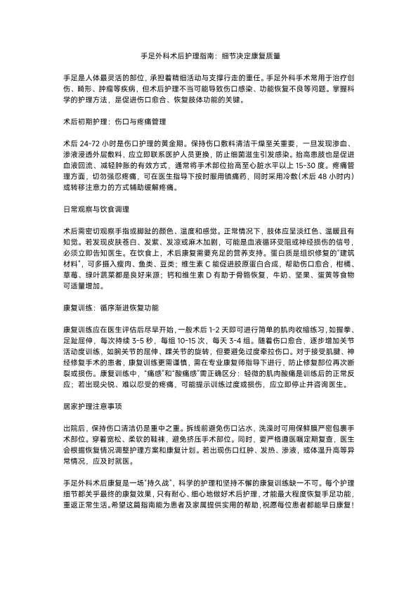 手足外科术后护理指南:细节决定康复质量