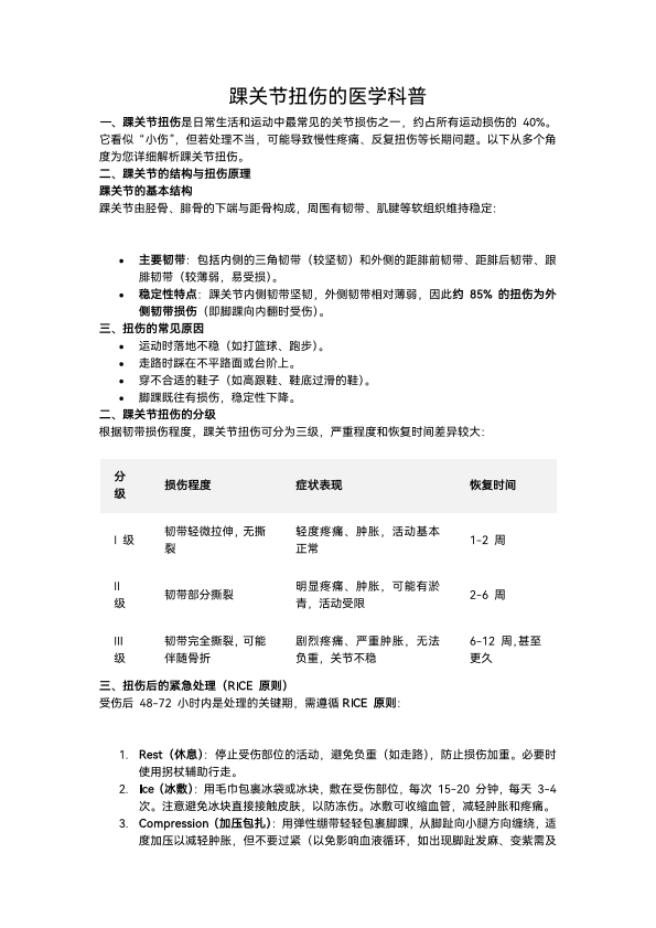 踝关节损伤的医学科普