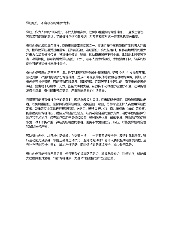脊柱创伤:不容忽视的健康危机