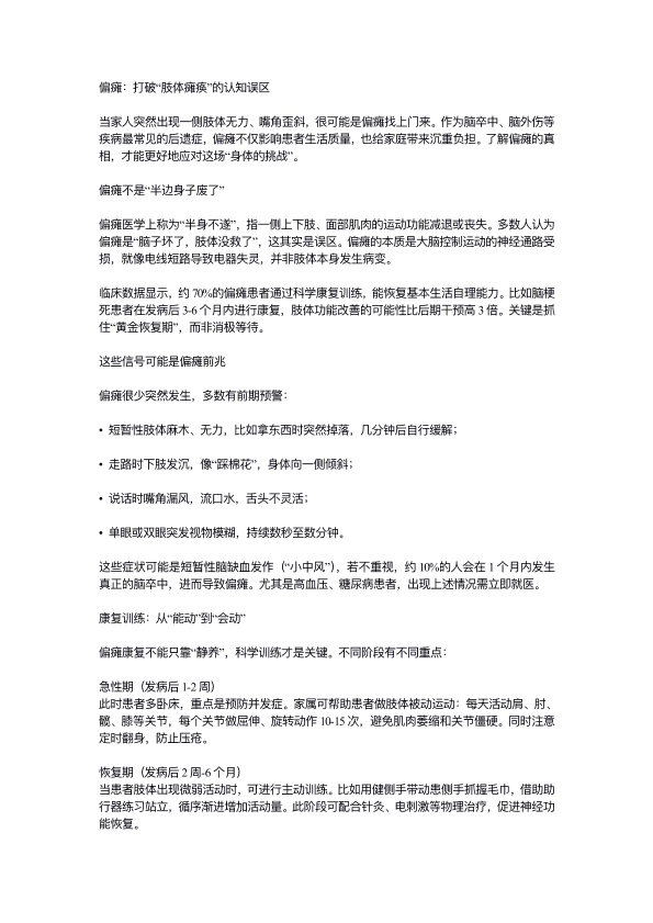 偏瘫:打破“肢体瘫痪”的认知误区