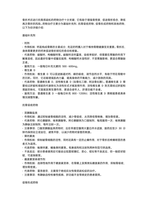 骨折术后抗骨质疏松的药物治疗