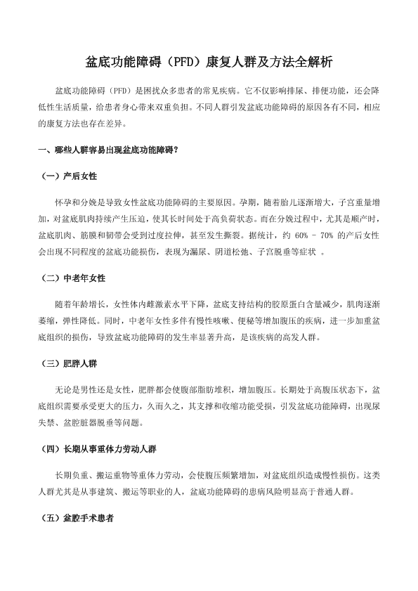 盆底功能障碍(PFD)康复人群及方法全解析