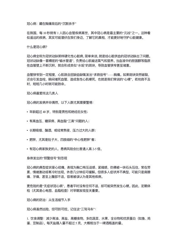 冠心病:藏在胸痛背后的“沉默杀手”