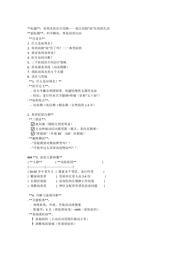 肩周炎得健康科普