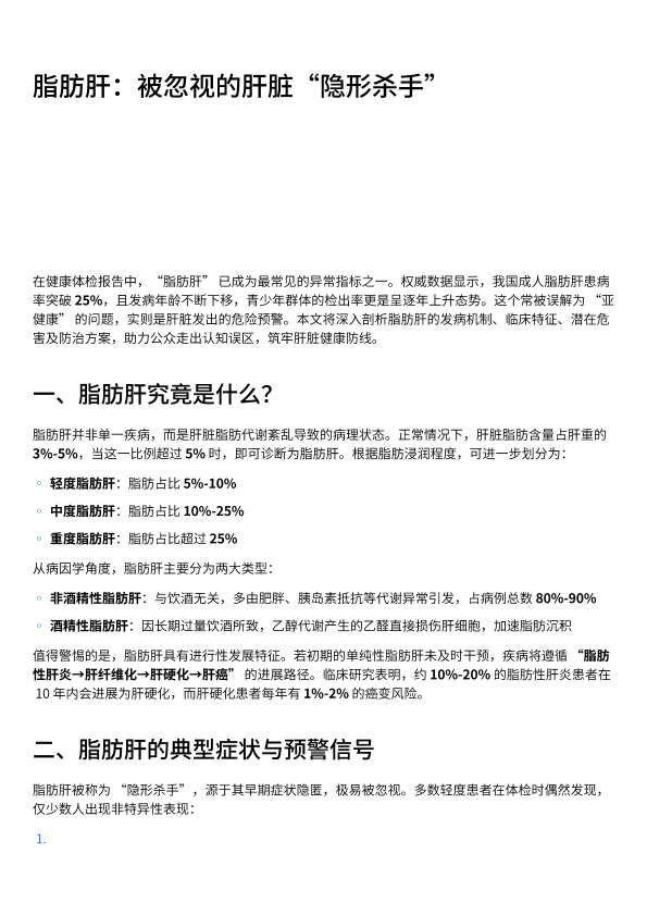 脂肪肝:被忽视的肝脏“隐形杀手”,科学认知与防治指南