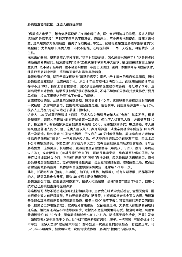 肠镜检查能拖就拖,这些人最好提前做