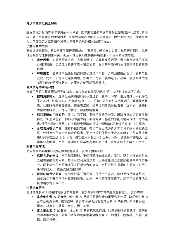 青少年预防近视全解析